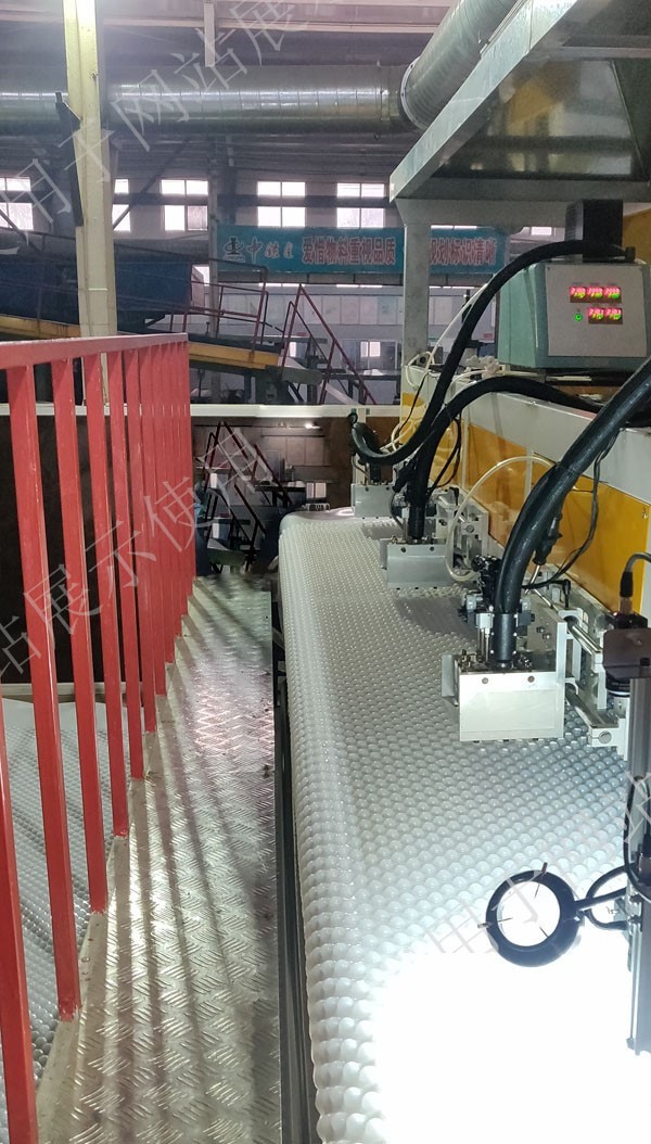 自粘式防排水板自動涂膠設備。 通過視覺識別引導噴膠機動作,實現快速、精確噴膠,在滿足產品使用要求基礎上,減少了自粘膠用膠量,降低了工人勞動強度,提高了產品質量,為企業(yè)創(chuàng)造更多的利潤。